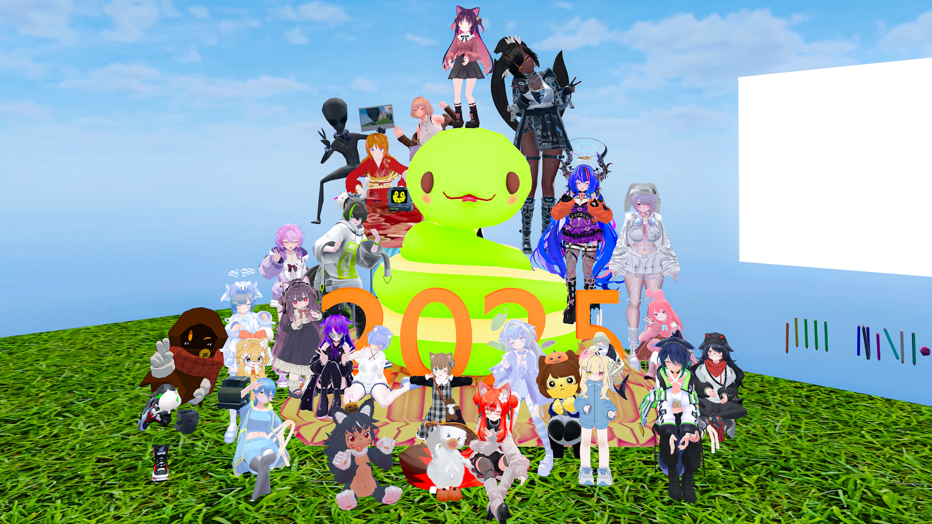 今朝の #VRCラジオ体操 集合写真!万博行きたいけど、休日に行ったフレンドさんの話聞いたらしんどそうだったのでやはり平日しか勝たん…… 行けたらやっぱりトルクメニスタン館行きたいね……w #VRChat