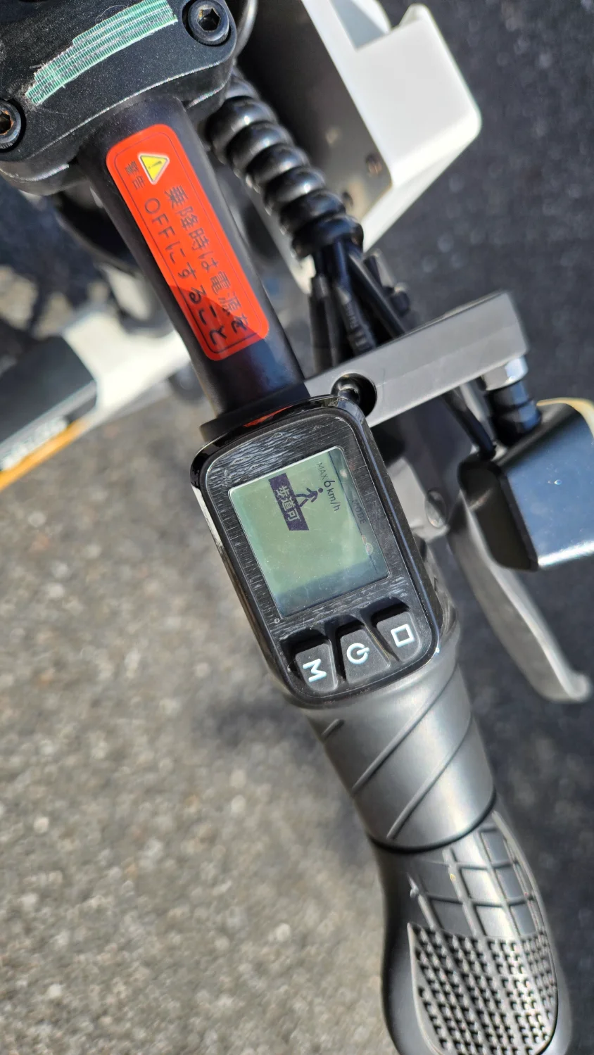NFR-01のリミッタースイッチ。ここで歩道走行できる6km/hリミッターと通常の20km/hリミッターを切り替える。