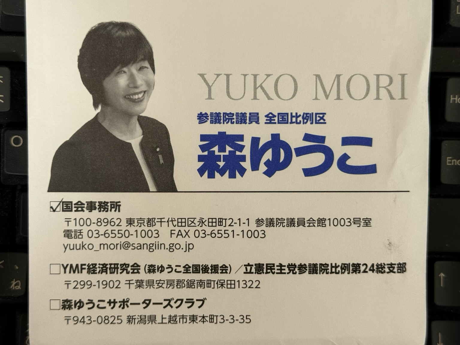 ひっさびさに森姐の団体から封書が来たと思ったら、寄付のお願いと、森姐の元秘書が新潟県知事選挙に挑戦するという文書。新潟県、今のハナズミ体制ではよくないと思うので、期待したいが…。