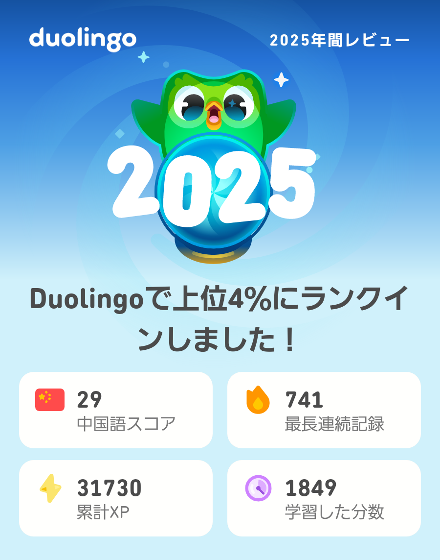2025年のDuolingoの学習記録が出たよ!もうチェックした?