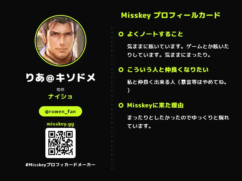 【#Misskeyプロフィカードメーカー】の検索結果