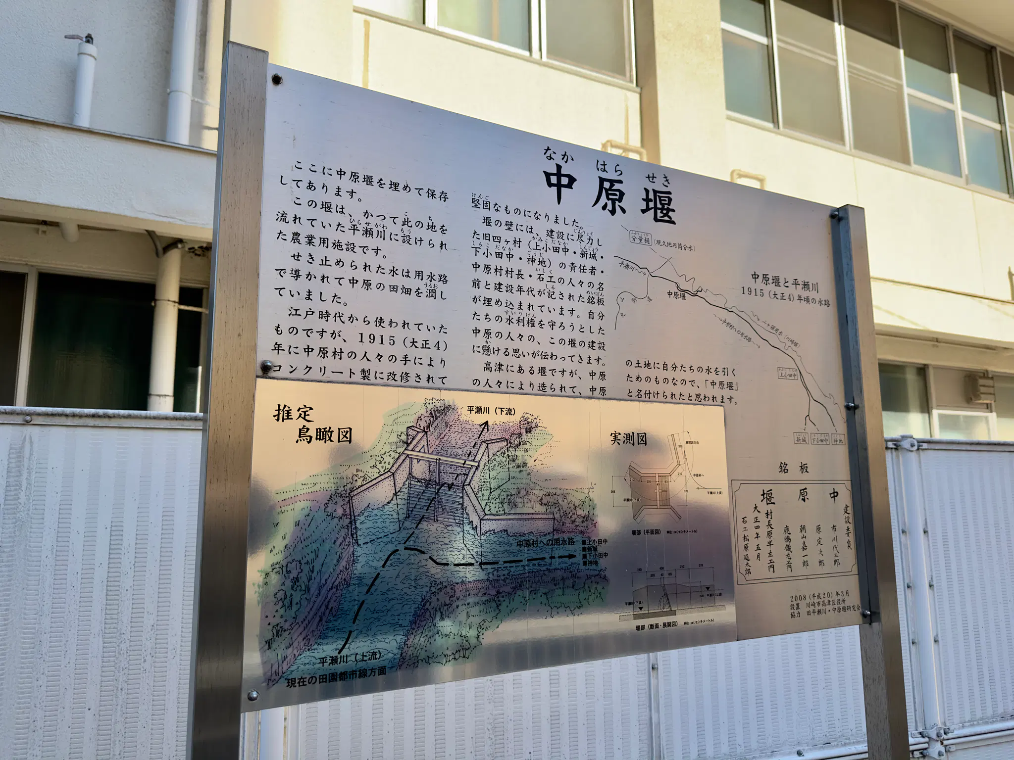 溝の口に何で中原の名前が?と思ったら「高津にあるけど中原の地に水を引くためのもの」だから中原堰らしい