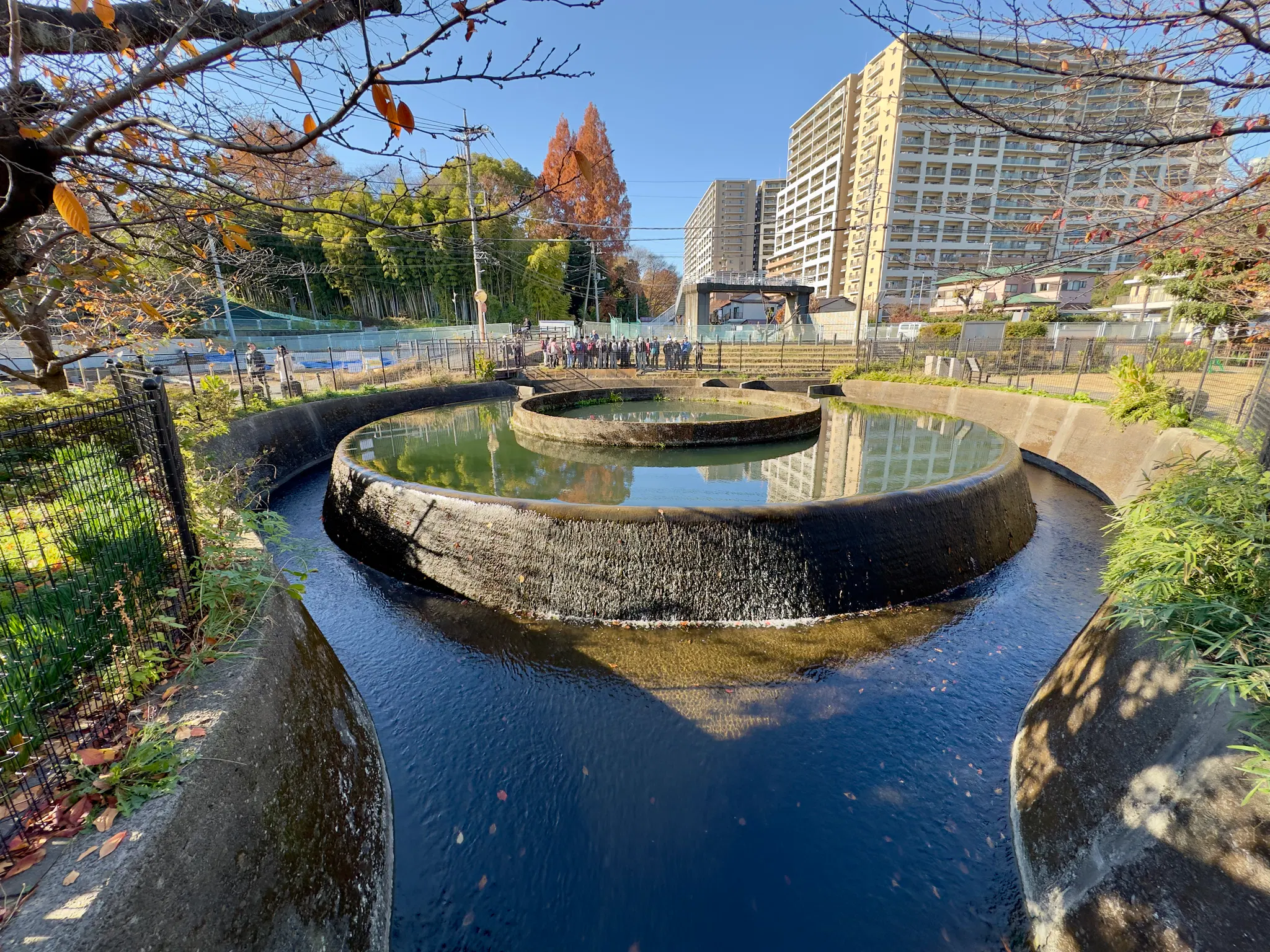 久地円筒分水、二ヶ領用水、平瀬川、新平瀬川放水路。複雑な水路のジャンクションは、このエリアの水資源分配に対する人智の結晶そのもの、といっても差し支え無いくらい。圧倒的機能美。 #Misskey巡検部_溝の口