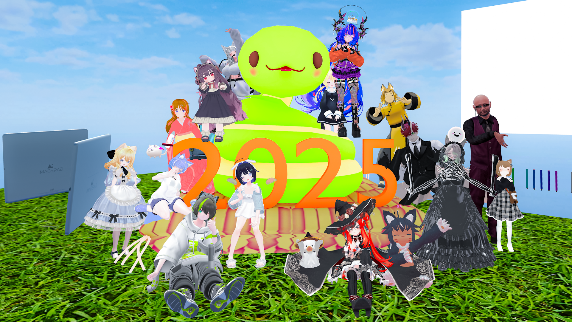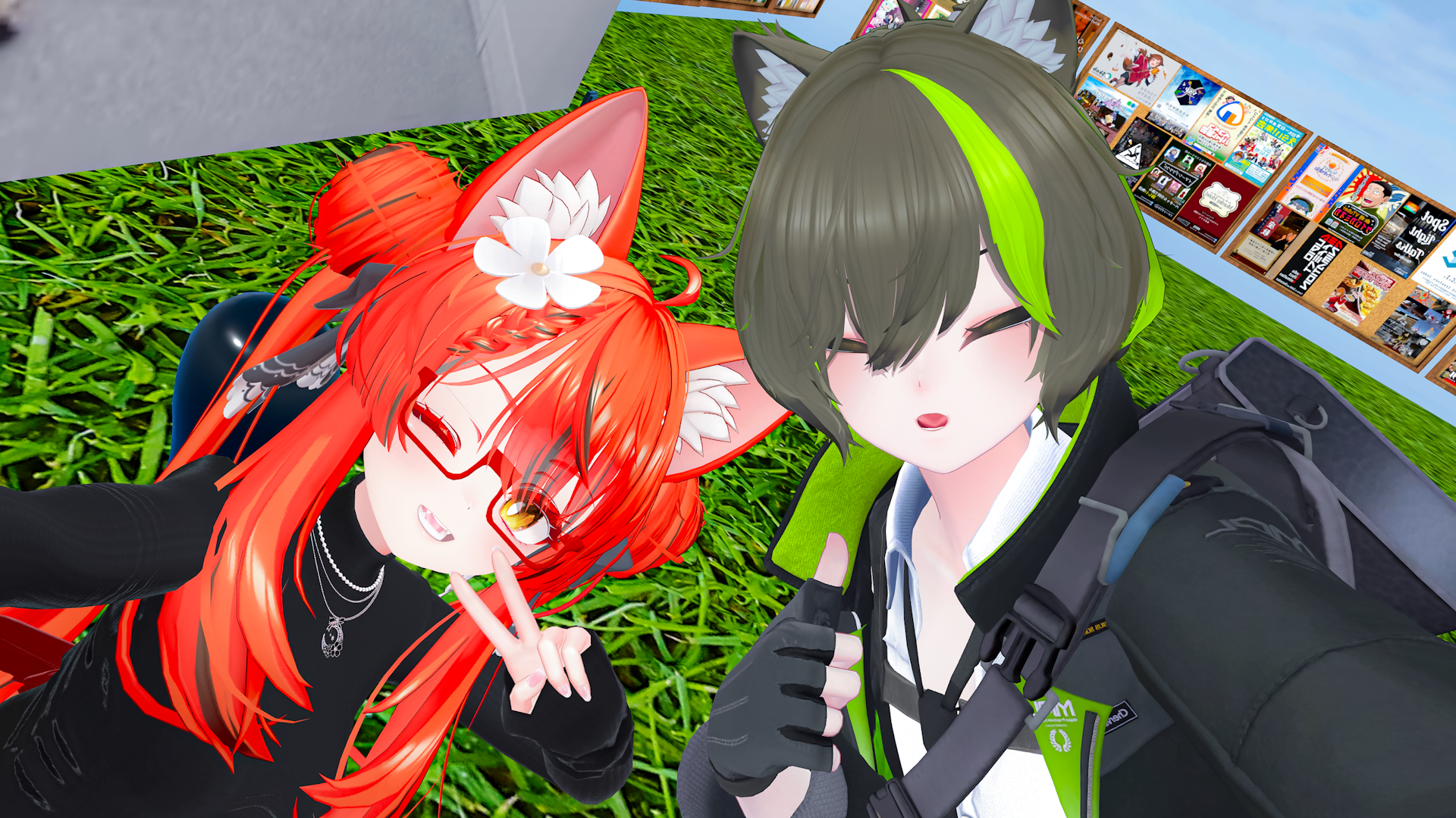 今日の #VRCラジオ体操 集合写真!涼しいのは嬉しいんだけど、厚い雲に覆われる空模様が続いてて気分も少しどんより…… お出かけしたくなるような天気にならないかなあ〜 #VRChat