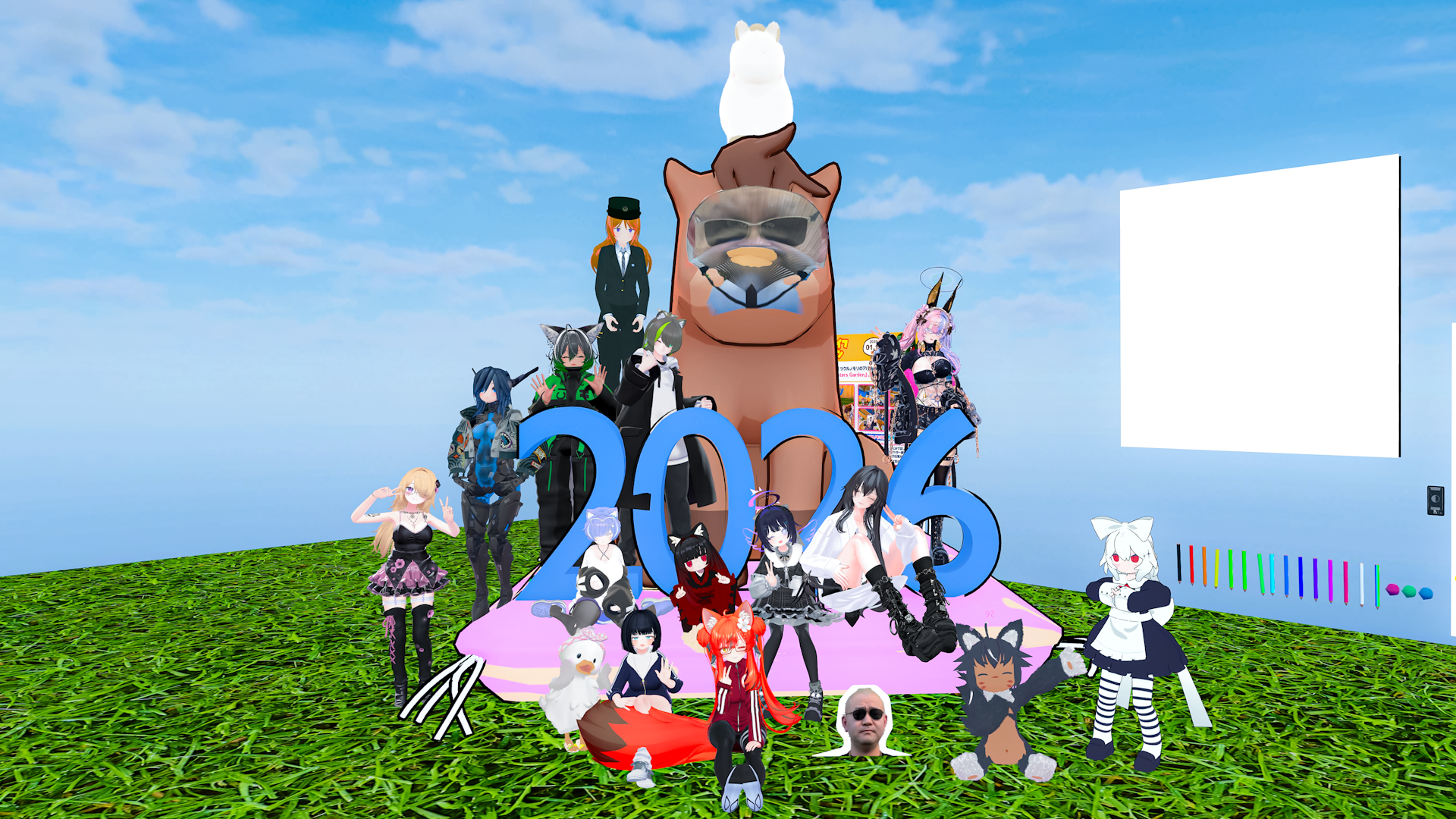 今日の #VRCラジオ体操 集合写真!せっかく暖かくて心地よかったのに明日からまた寒くなるんですかーっ!?やだーっ!!! #VRChat