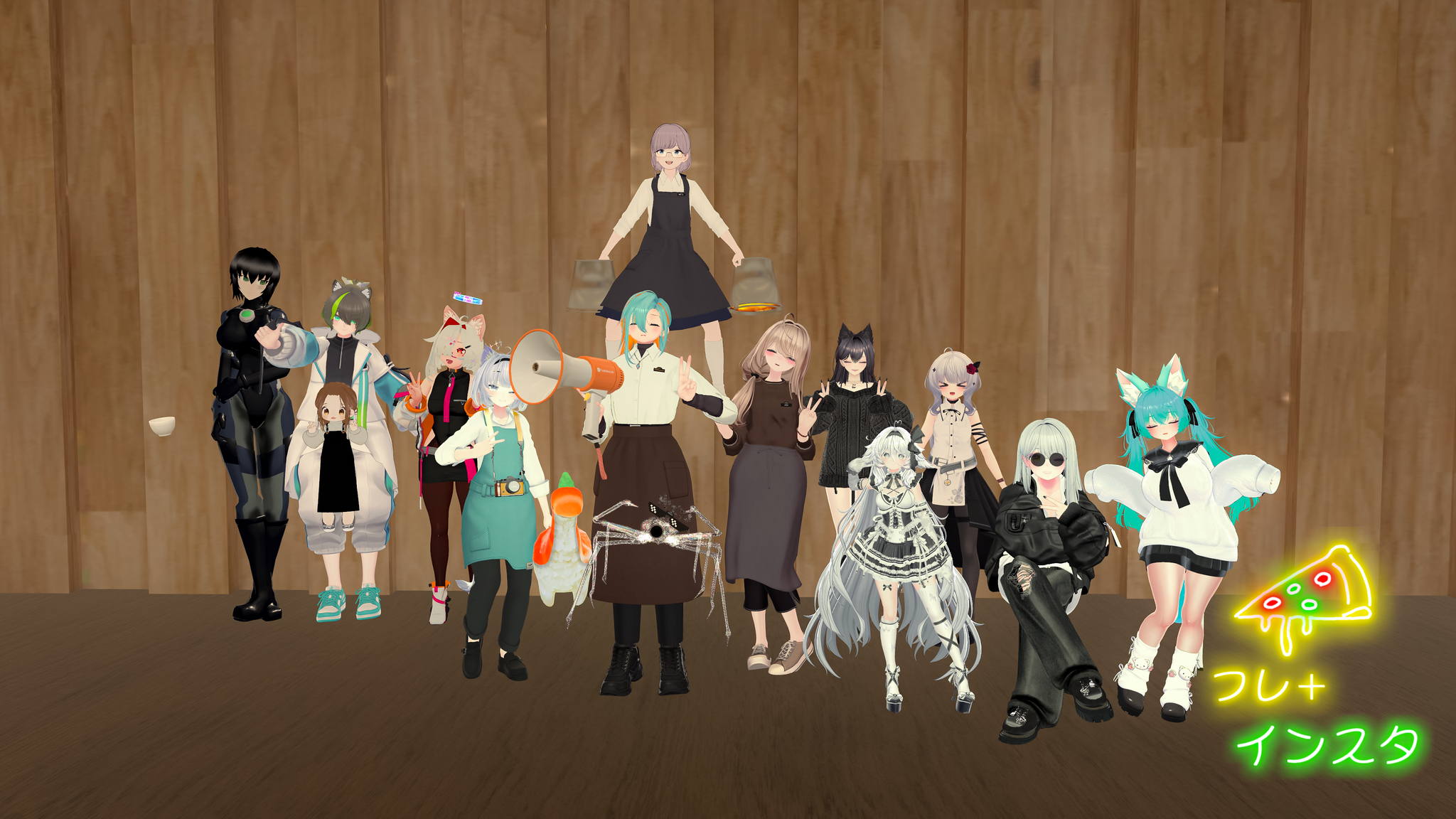 今日の #VRCラジオ体操 集合写真!バーチャルピューロもいいけれど、そろそろリアルのピューロランドも行きたいね〜 #VRChat