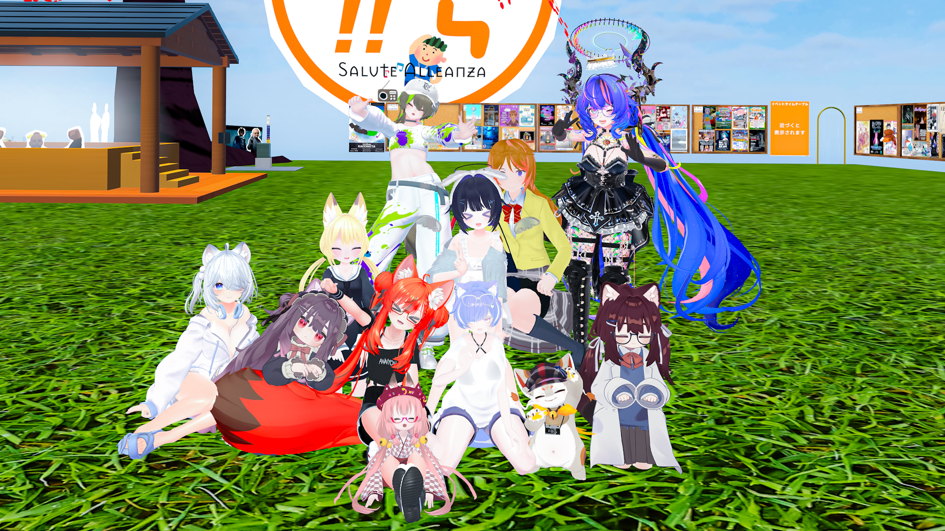 今日の #VRCラジオ体操 集合写真!いずみん(@izumin@best-friends.chat)VTuber活動7周年おめでとー!そろそろ秋の装いが増えてきたので、今年こそはハロウィン改変をせねば…… #VRChat