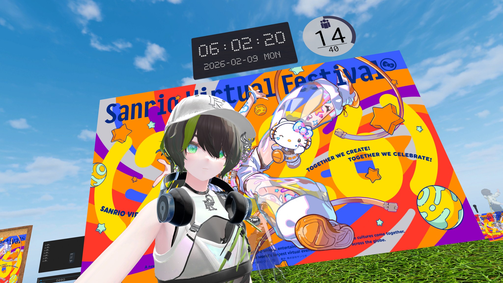 今日の #VRCラジオ体操 × #サンリオVfes 集合写真!曲は同じだけど日替わりで映像が変わるっぽい!今日のラジオ体操はマイメロ、Party Partyはキティちゃんだった!早く振り付け覚えなきゃー! #VRChat