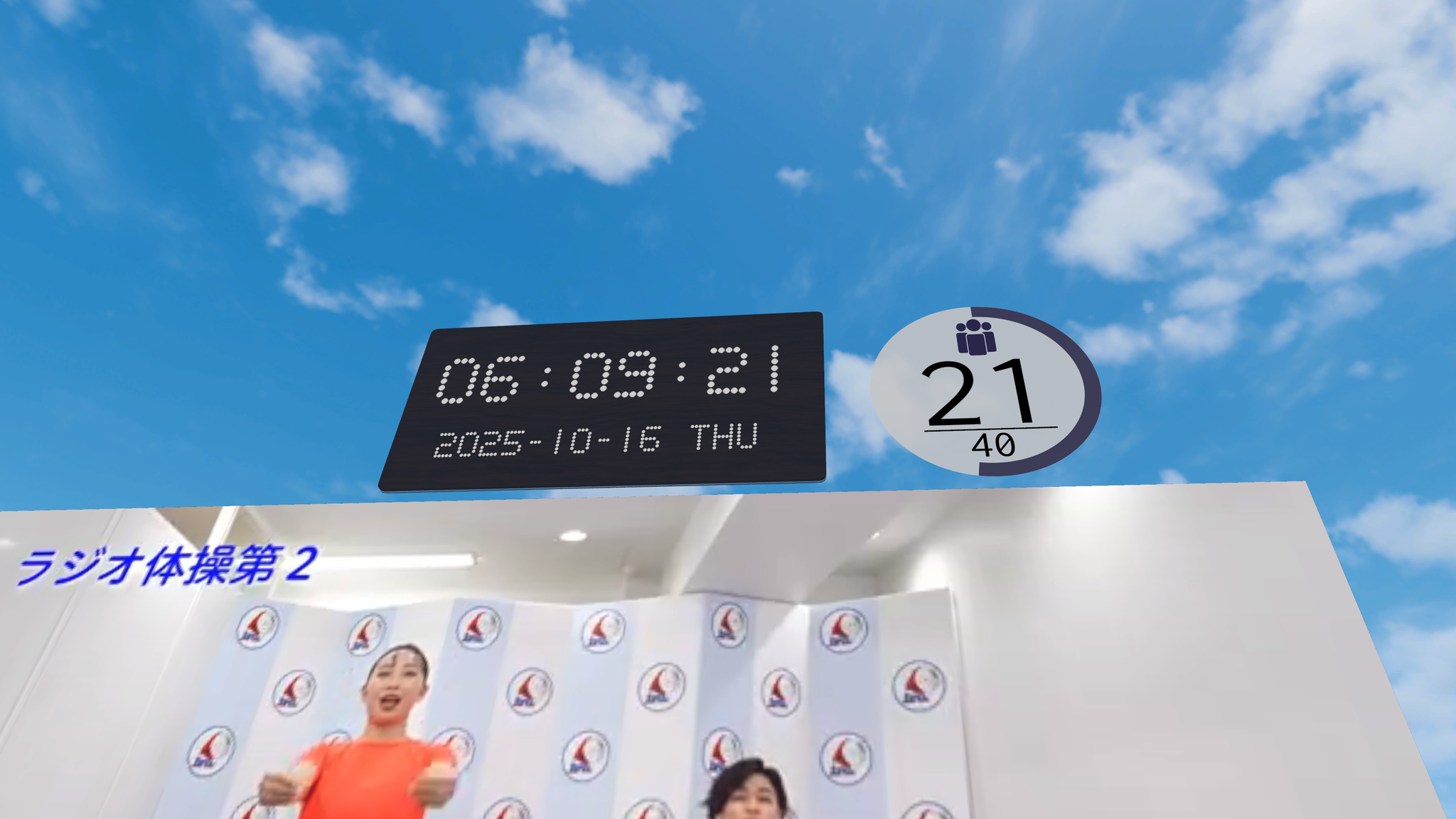 今日の #VRCラジオ体操 集合写真!いつも季節の変わり目に弱くて風邪引きがちなんだけど今年は快調。やらないよりもちょっとでいいからやる運動の大切さを実感する今日この頃! #VRChat