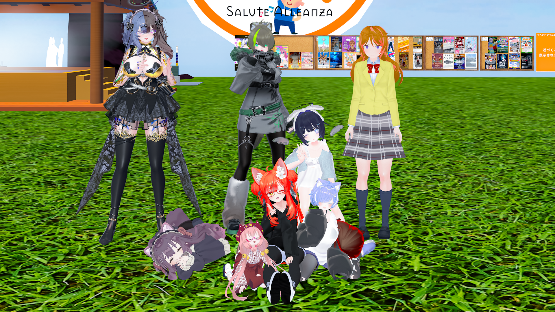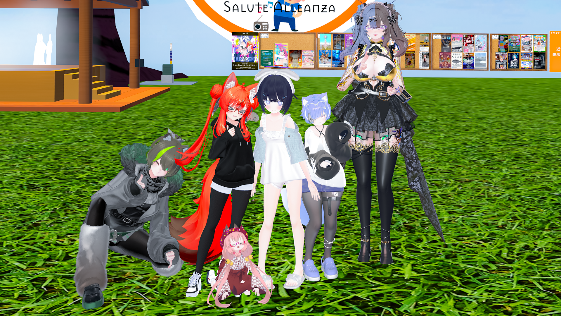 今日の #VRCラジオ体操 集合写真!沖縄の話と水族館の話とベルセリナちゃんの話をしてたらあっという間に時間が過ぎた!いや〜、沖縄っていいよねえ〜