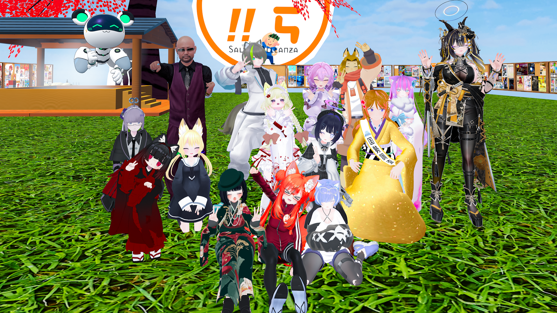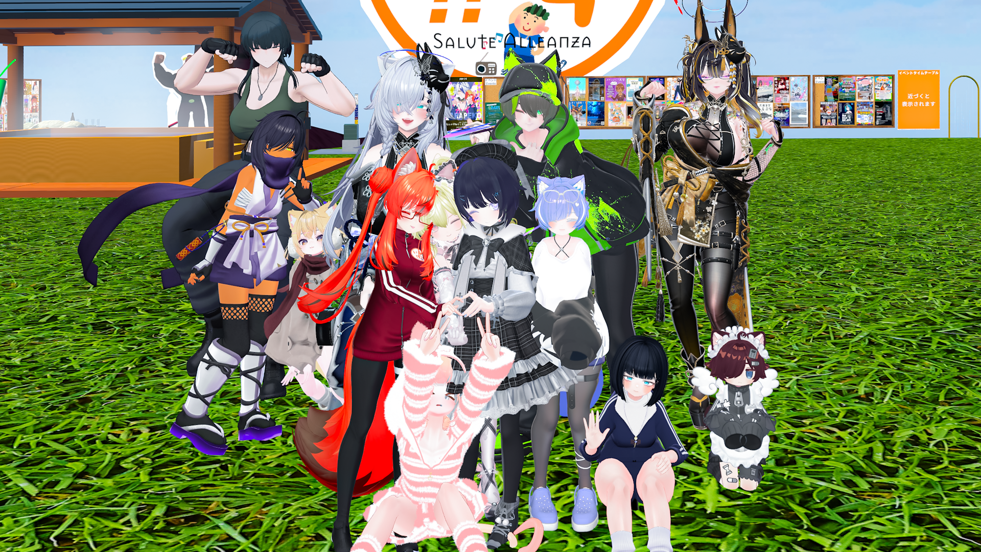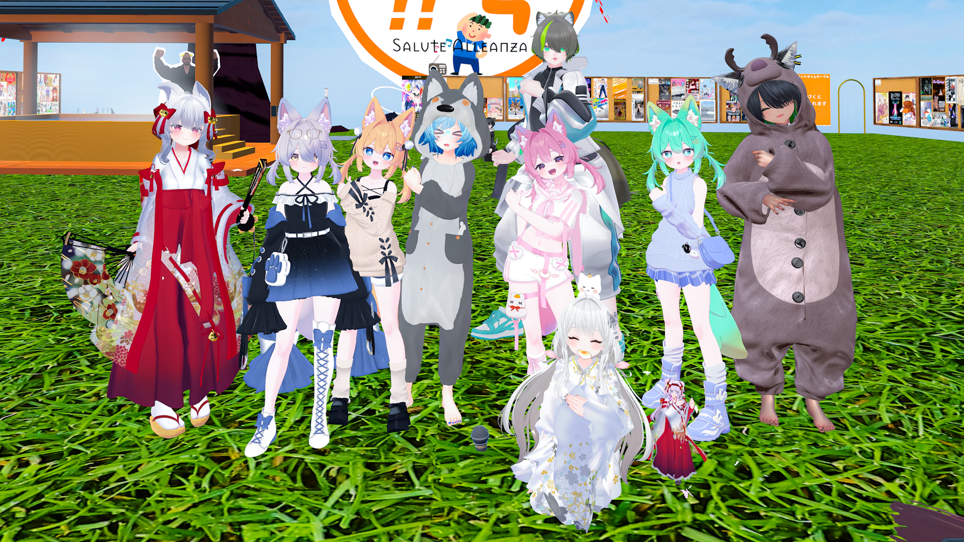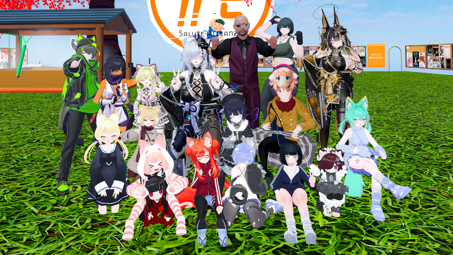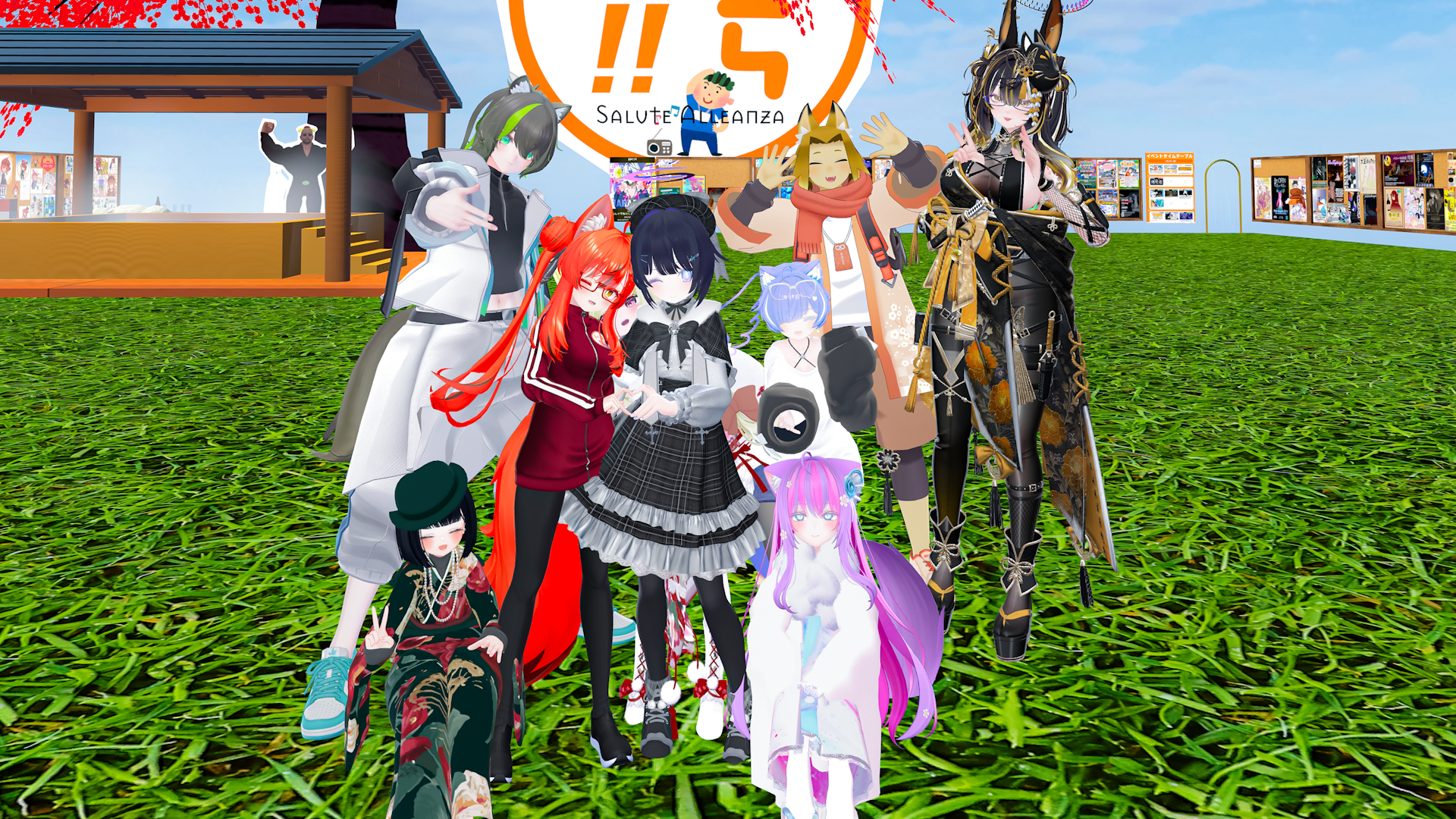今日の #VRCラジオ体操 集合写真!楽しい楽しいRiJの季節!早速みんなでVRCで同時視聴してるわよ〜 #VRChat