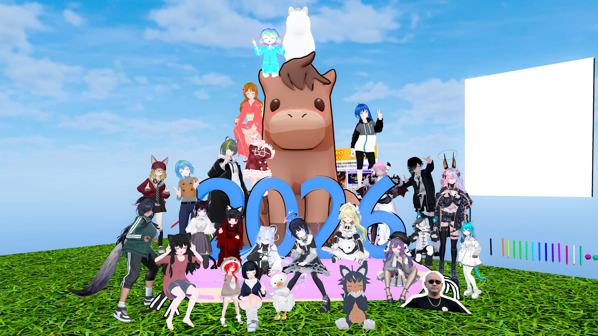 今日の #VRCラジオ体操 集合写真!今日で1月も終わり!あっという間〜!今月は最後の方風邪引いて3日くらい休んじゃったから、来月は休まず行けると良いな〜 #VRChat