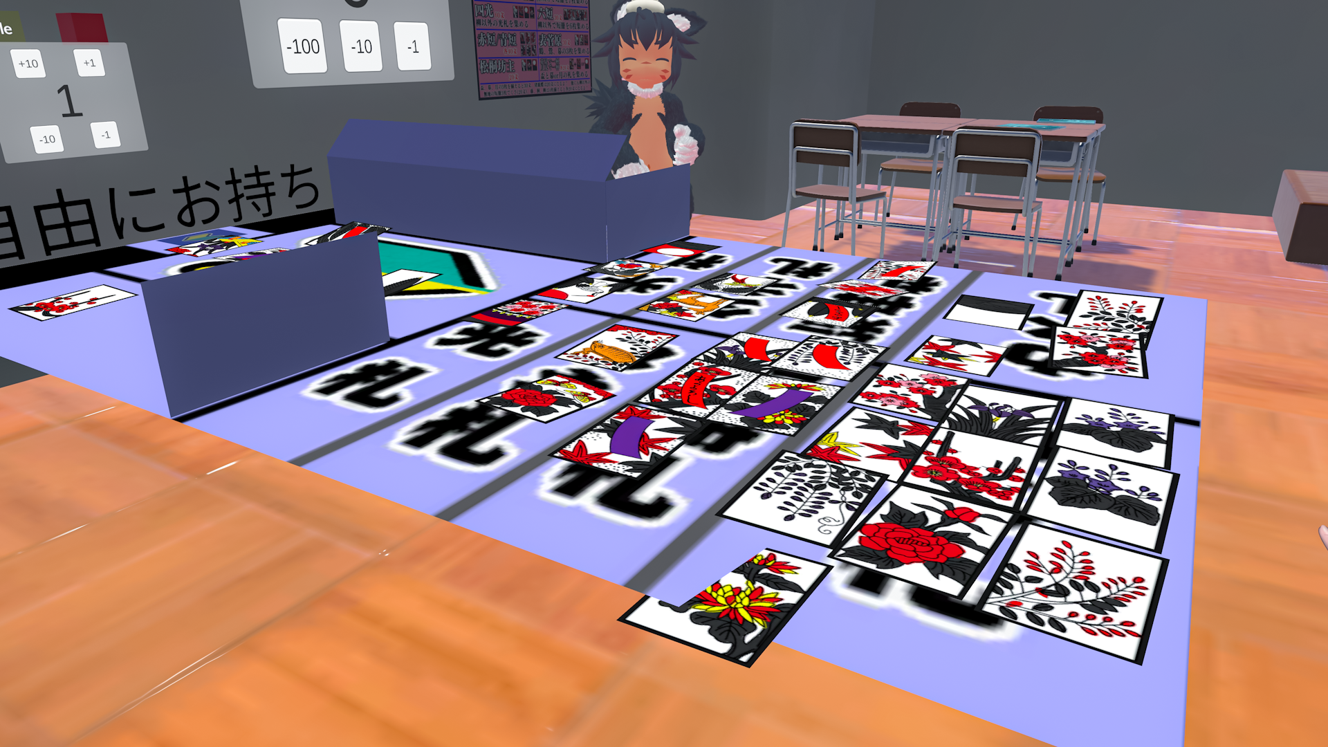 今日の #VRCラジオ体操 集合写真!最近朝5時半に起きれず今日は7時から参加。EXやって集合写真撮ったあとひでとさんと花札ワールドに行ってきた!軽くルールを思い出したあとにいざ対戦。途中まで勝ち進めてたけど逆転されて負けちゃった!お正月にやる花札は楽しいね〜🎴️ #VRChat
