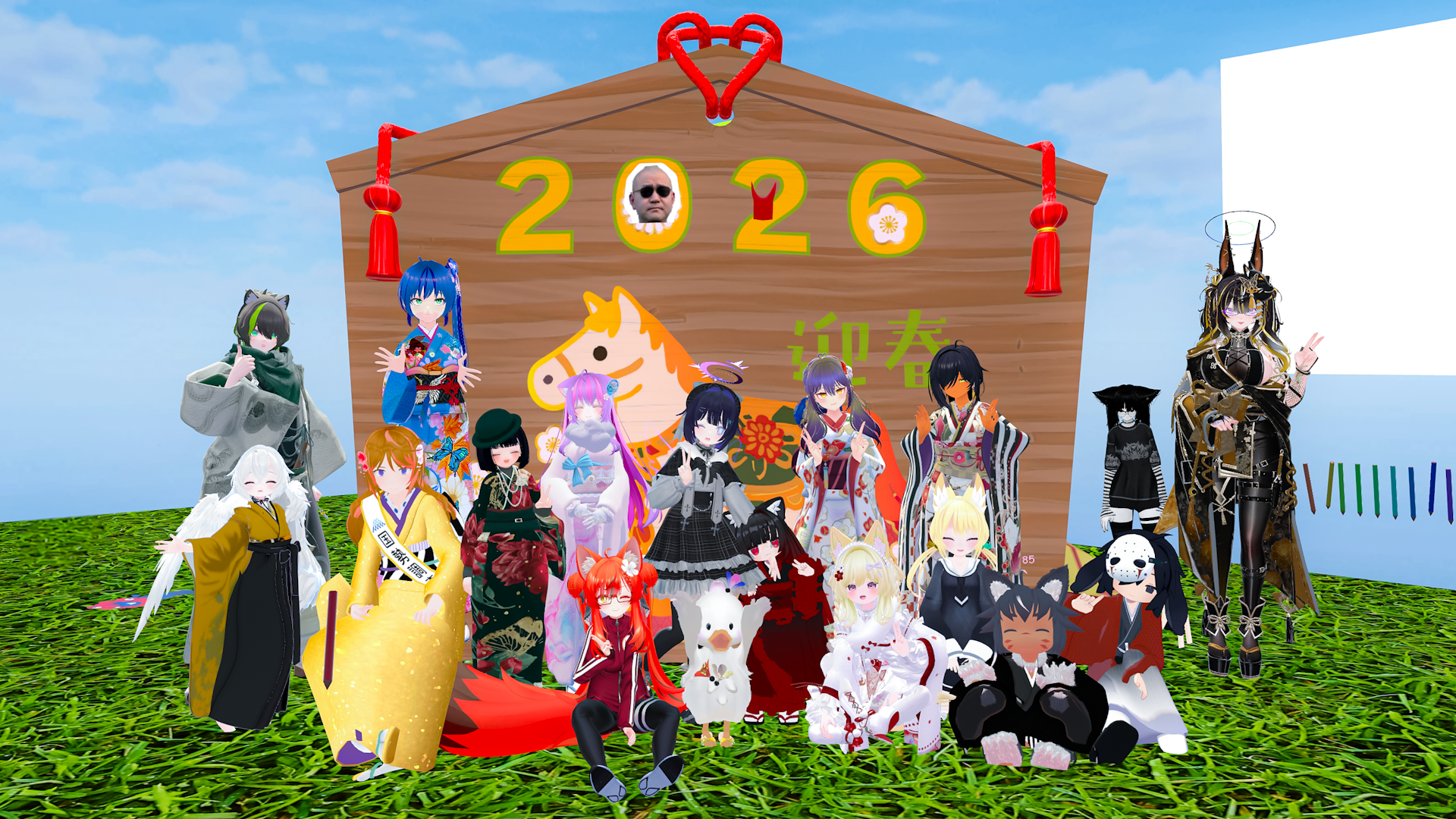 今日の #VRCラジオ体操 集合写真!元旦は寝過ごして参加できなかったので今年初めてのラジ体!2026年もよろしくお願いします!ぱわー! #VRChat