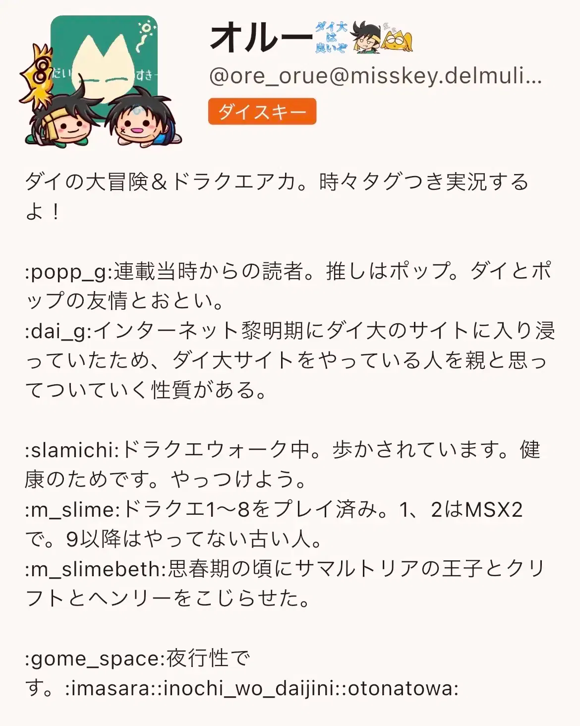 あっ、プロフィール本文の絵文字がショートコードのままになる件をお願いします。