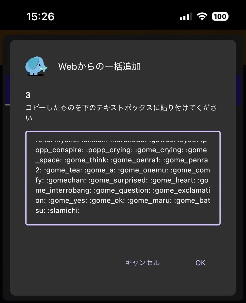 この部分の、アカウントの表示名の絵文字がショートコードのままですね