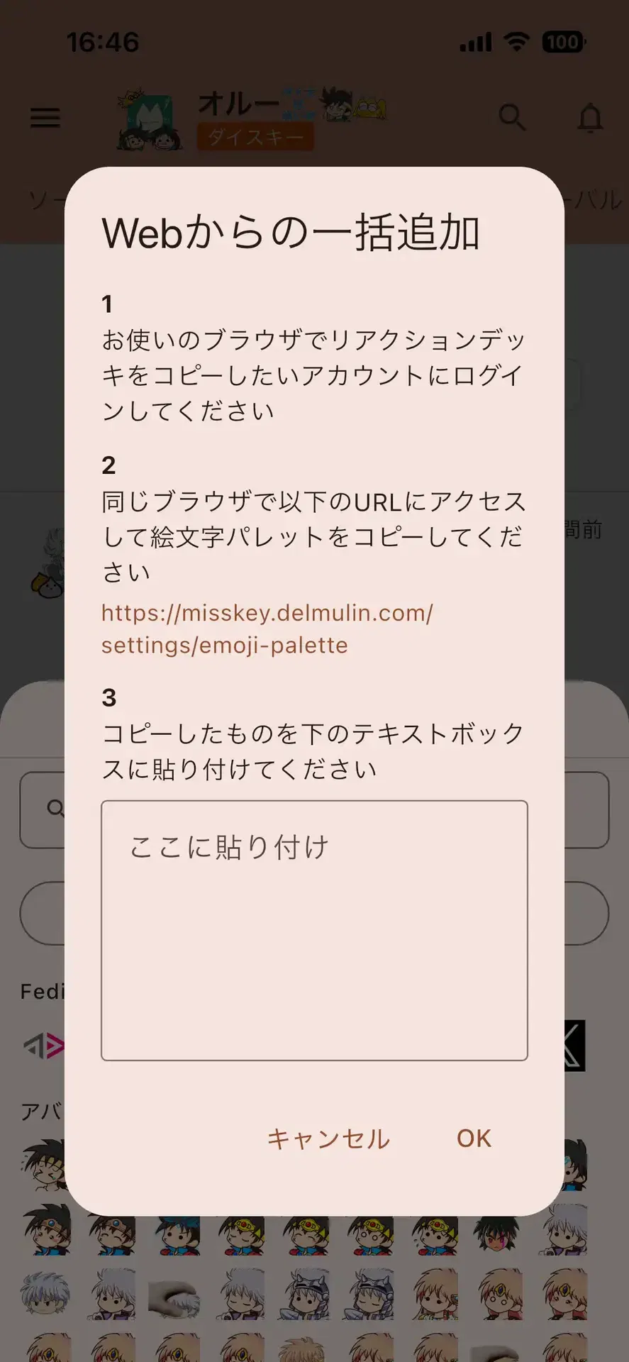それか、Misskeyの絵文字パレット設定画面への操作を文字で説明しちゃった方がいいかも