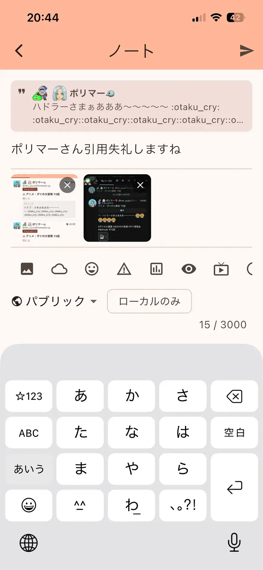 引用や返信があるときに画像も添付するとテキスト入力欄がめっちゃ狭くなります。