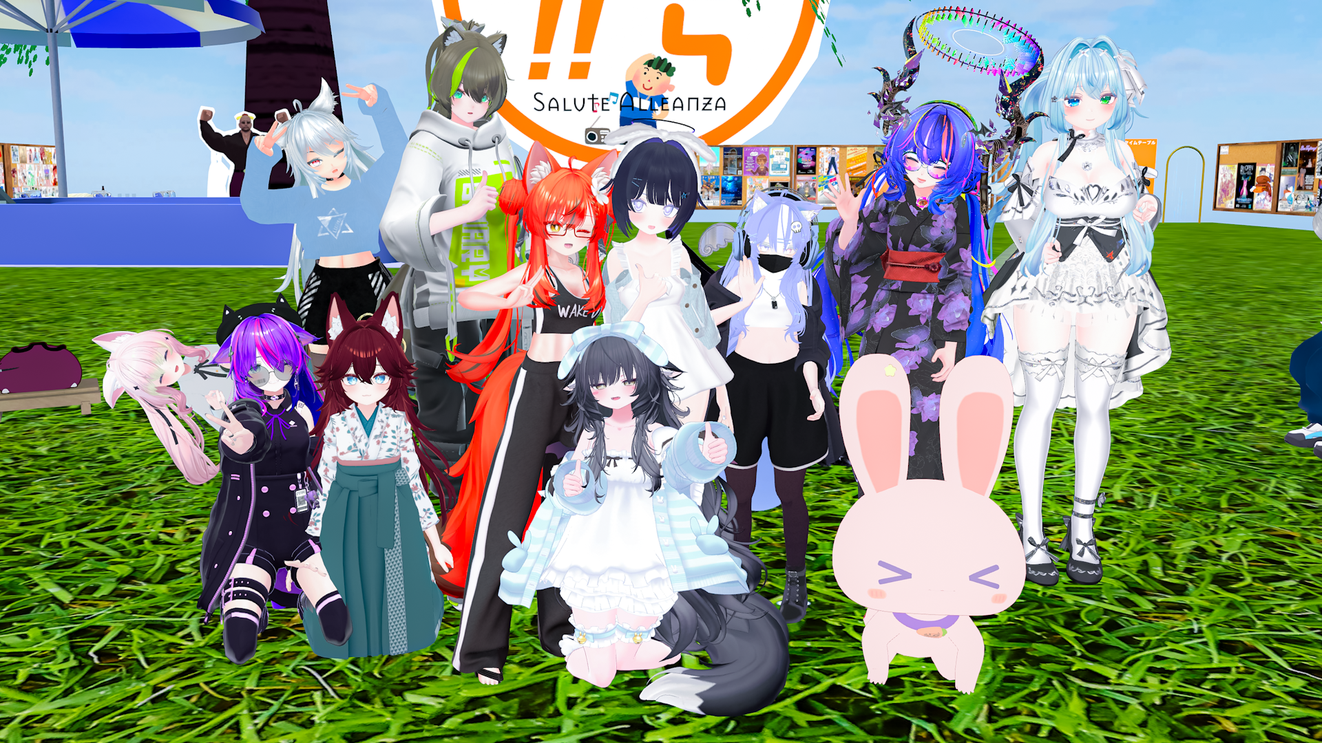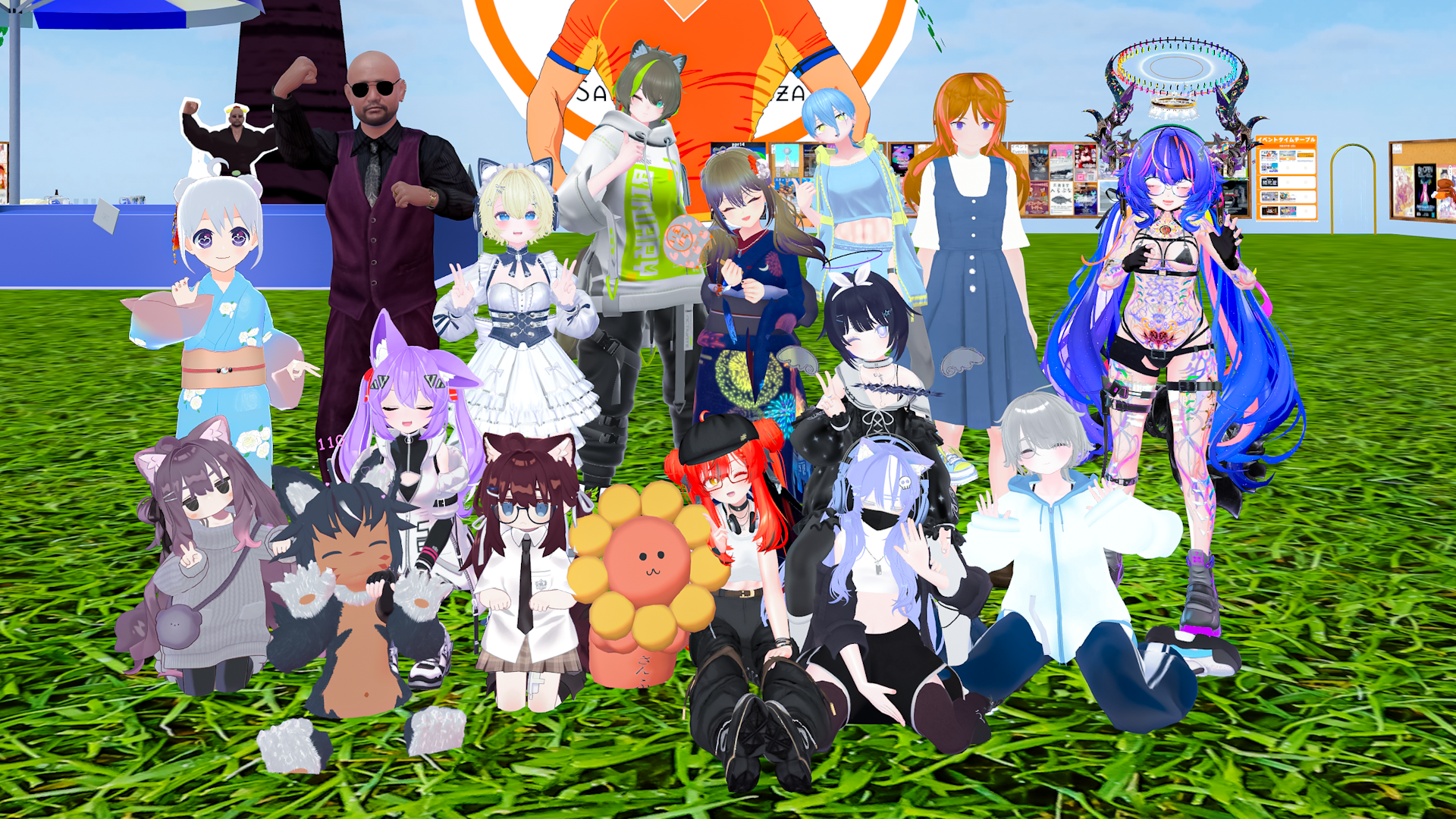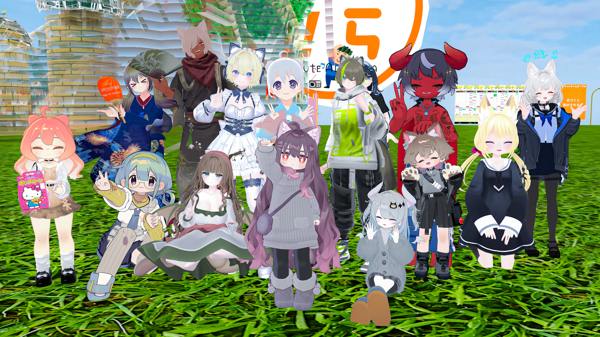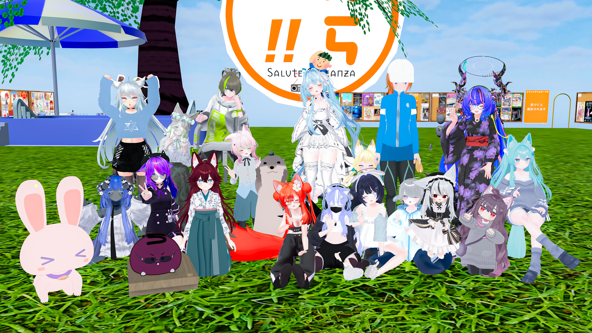 今日の #VRCラジオ体操 × #サンリオVfes 集合写真!サンリオVfesも今日と明日の2日間でおしまい!ラストスパート! #VRChat