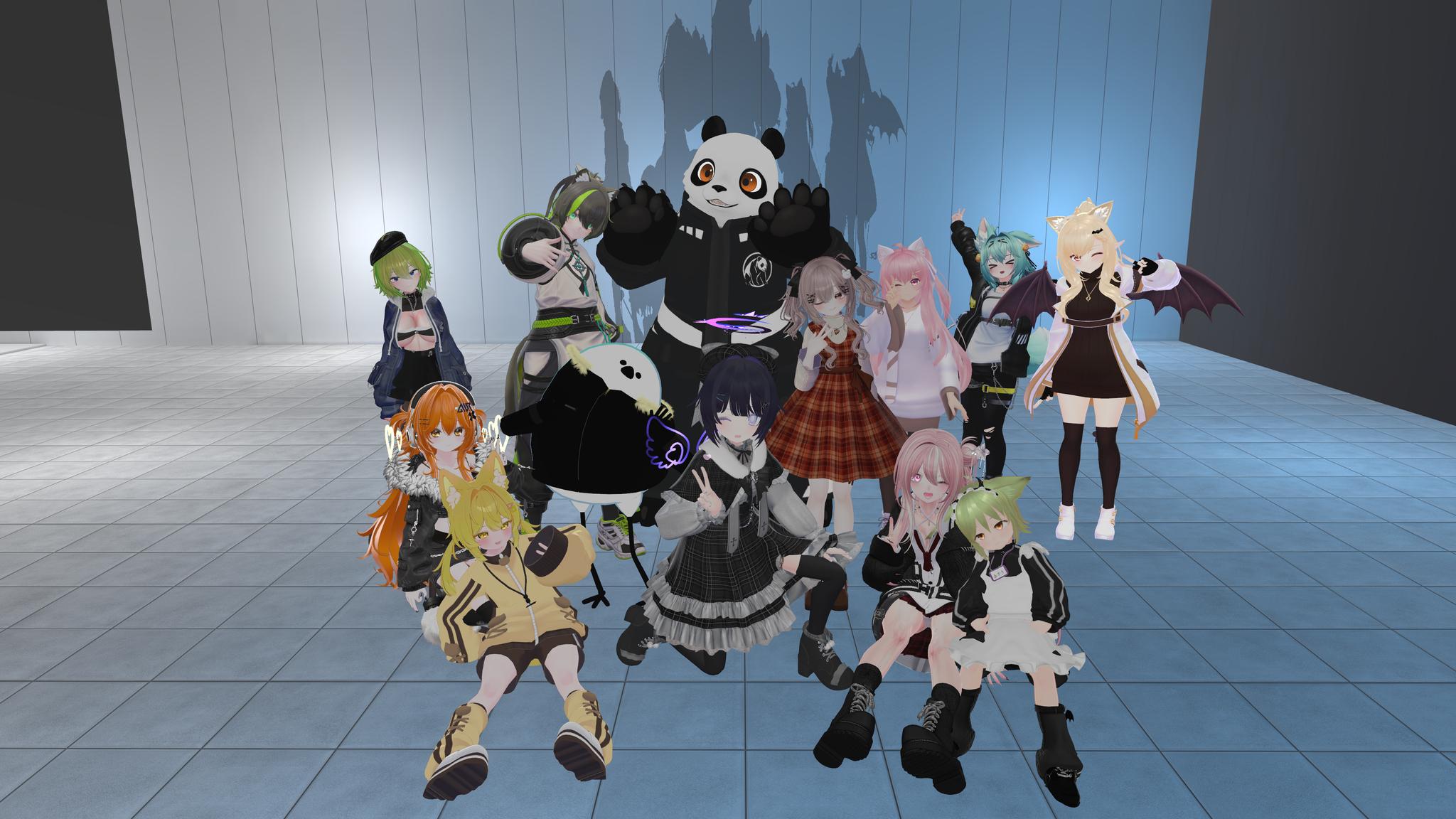 今週の #ゆるふわパラパラ部 集合写真!……を撮ろうとしたら #VRChat が落ちたので、代わりに写真を撮ってる人たちを撮った写真でお茶を濁す🍵