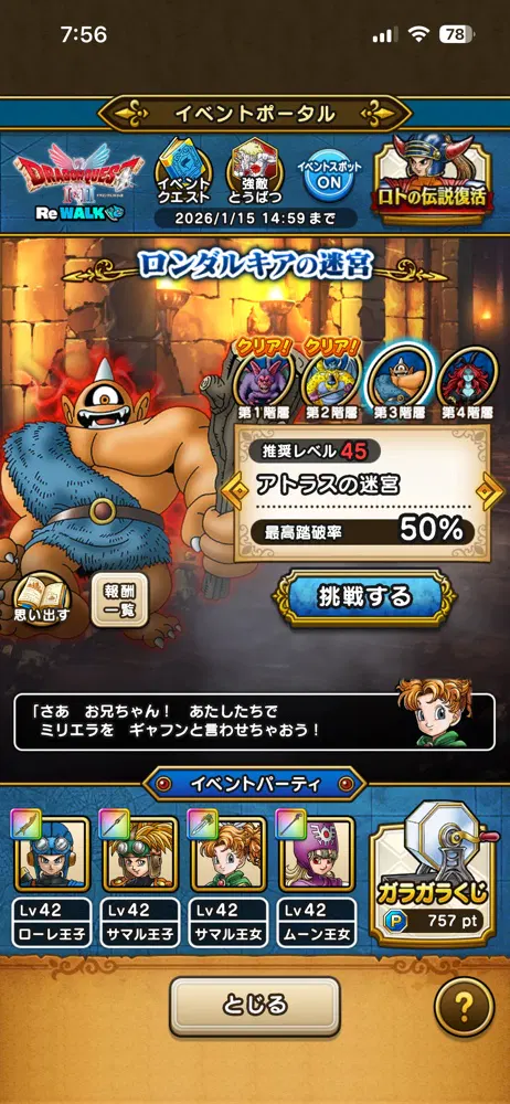 となってからやる気低下していたギガモン蒼き竜王ですが、ギガルーラポイントがカンストしちゃったのでパーティー編成してやりました。