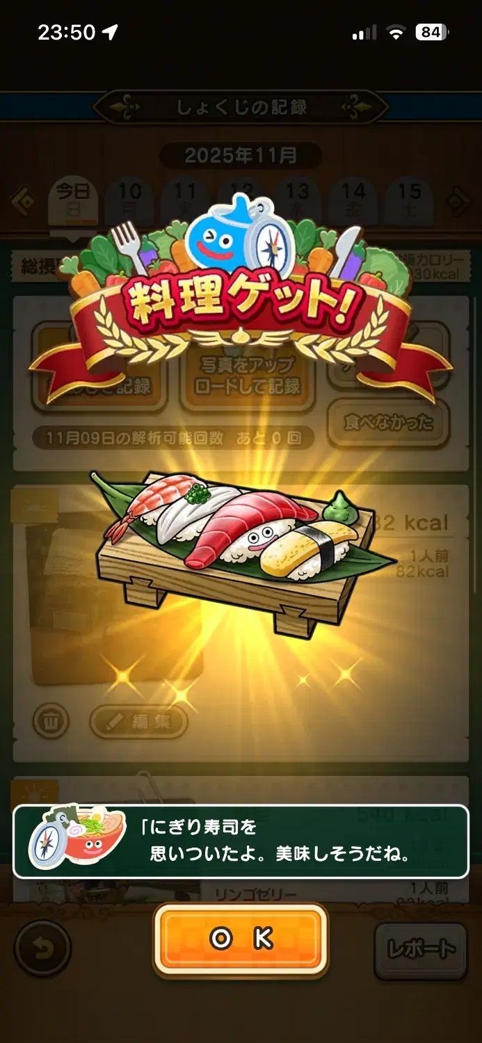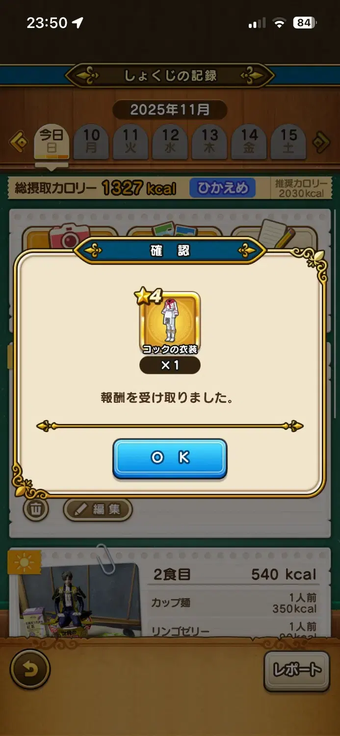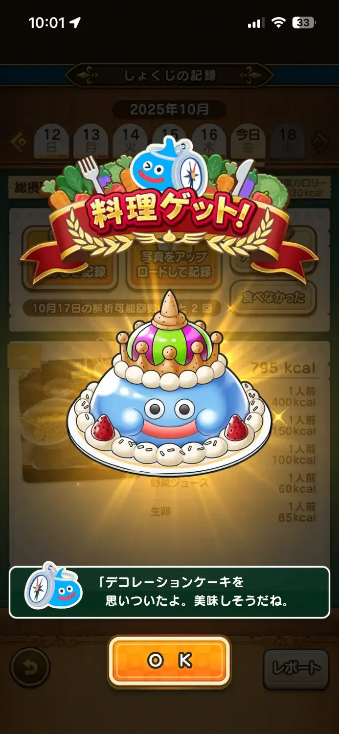 うちのもぐもぐスラミチは普通に戻りました先週は全体的にちょうどいいカロリーをとっていたみたいです。やはりその日のうちに入力することが肝要なんですかね?1日だけ入力をわすれて2回だけの日がありましたが、マイレージは2500もらえました。入力自体はその日以外は3度、日が変わる前に入れています(テキストが多い。最低1回は写真載せてるけど)#delmulin #ドラクエ #ダイの大冒険 #ウォーク #DQウォーク #dqw #dqウォーク #ドラクエウォーク