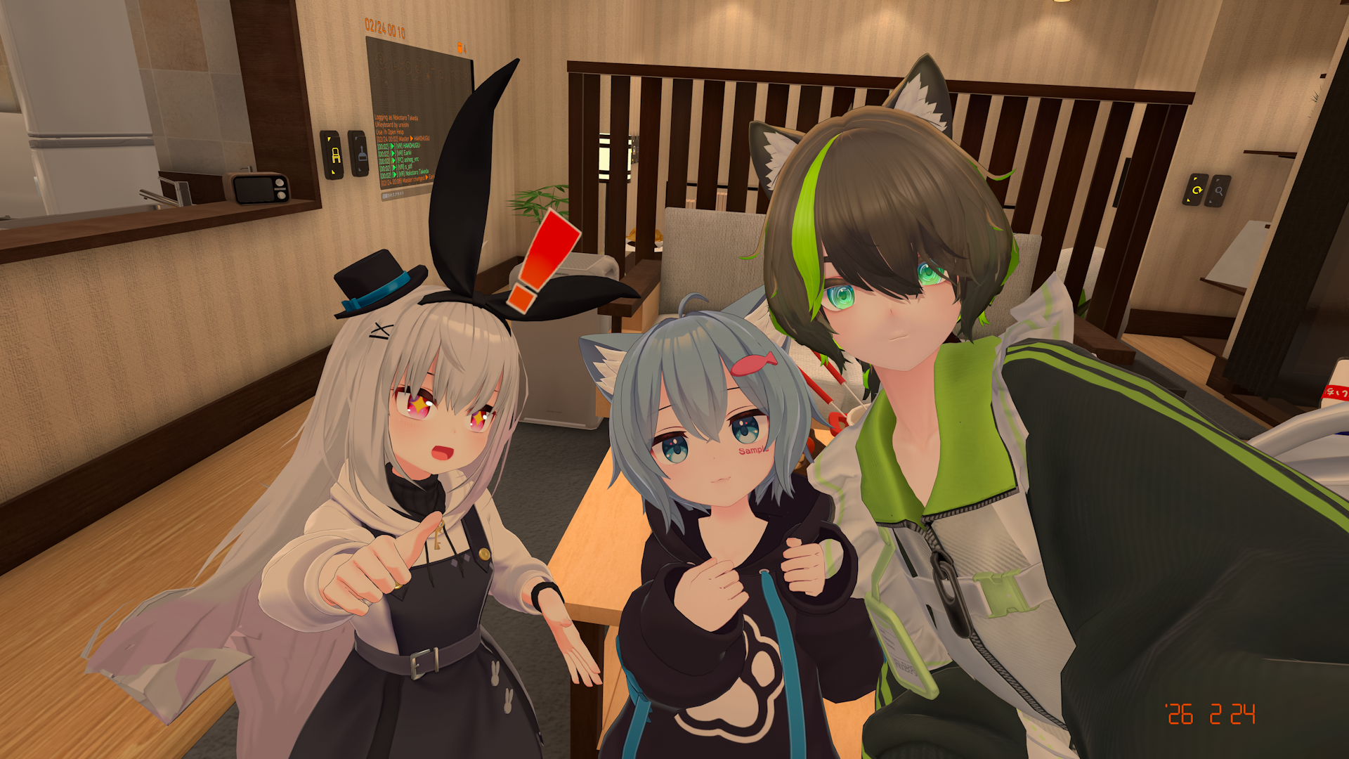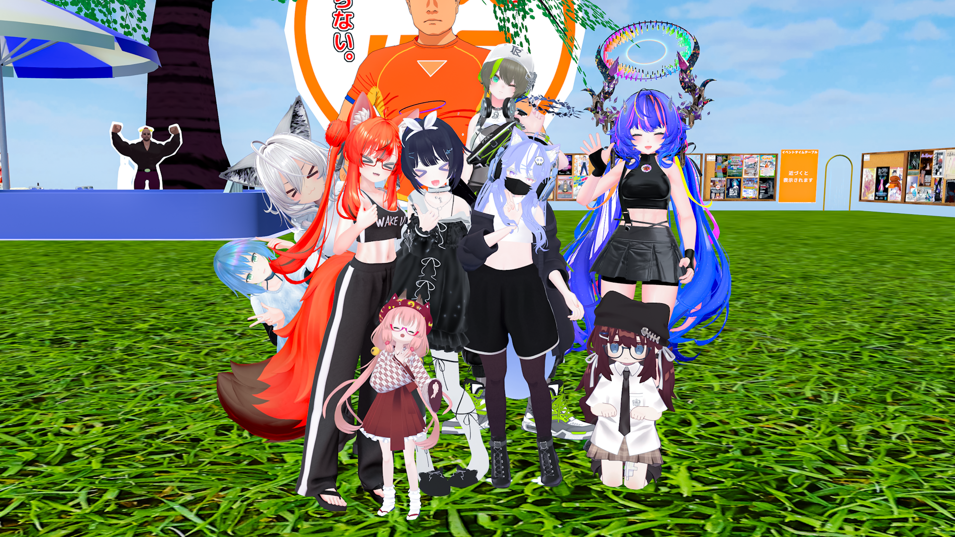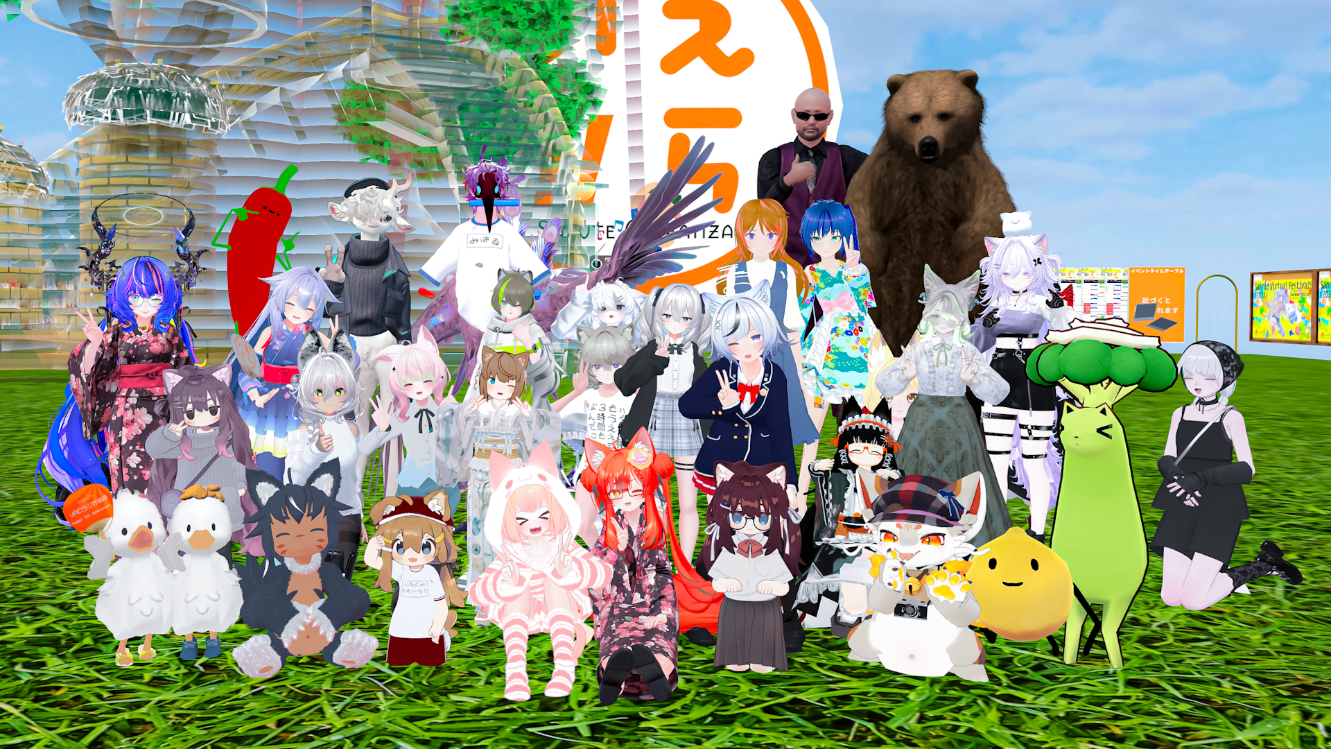 今日の #VRCラジオ体操 × #サンリオVfes 集合写真!昨日の夜突然ぶっ壊れたグラボ、何とかなおったみたいで良かった…… 涼しくなってきたから窓開けっぱにしてるけど、バイクやら救急車やらの音まで拾っちゃう〜 #VRChat