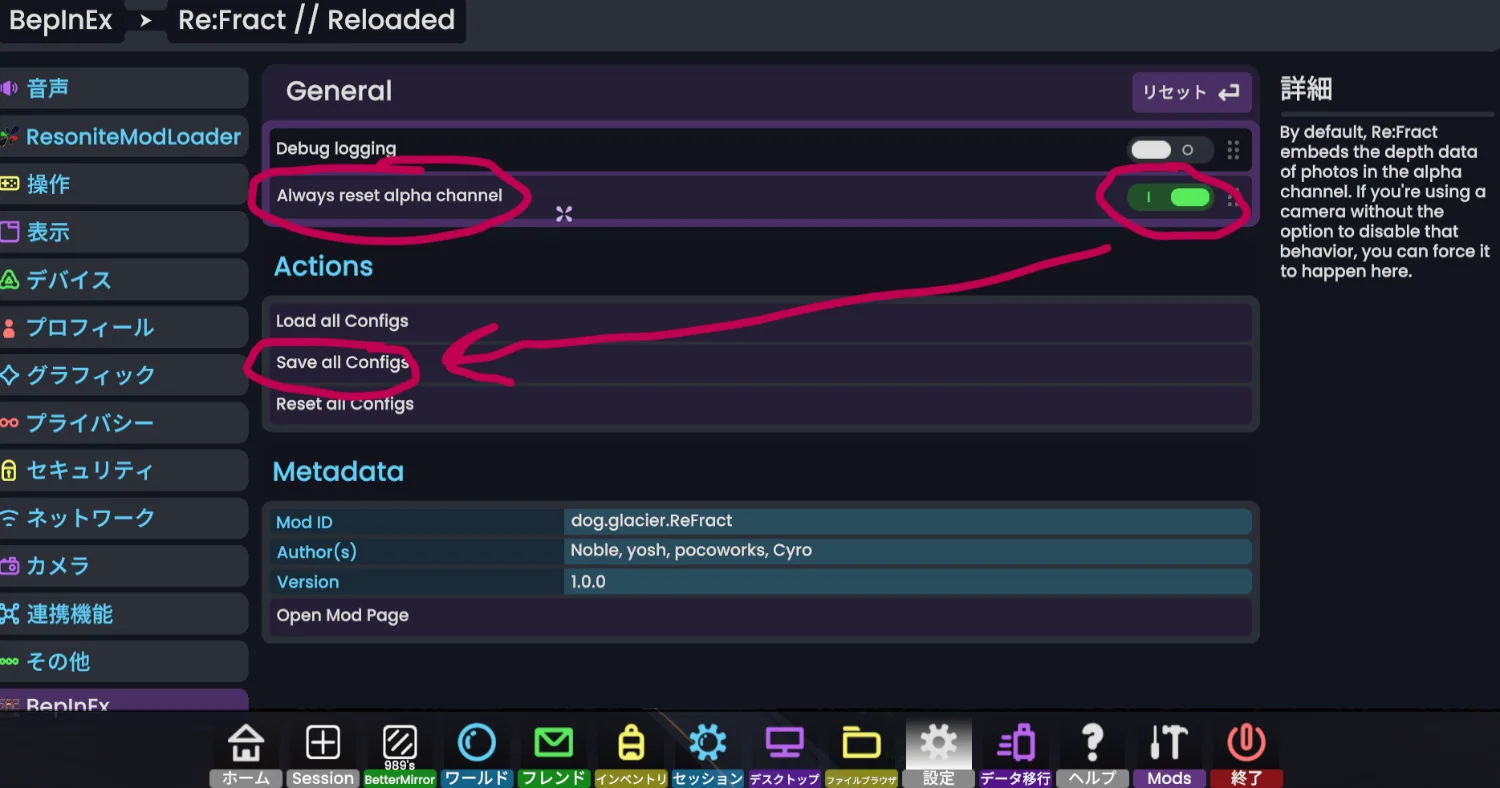 * 各MODの設定を変更したら「Save all configs」