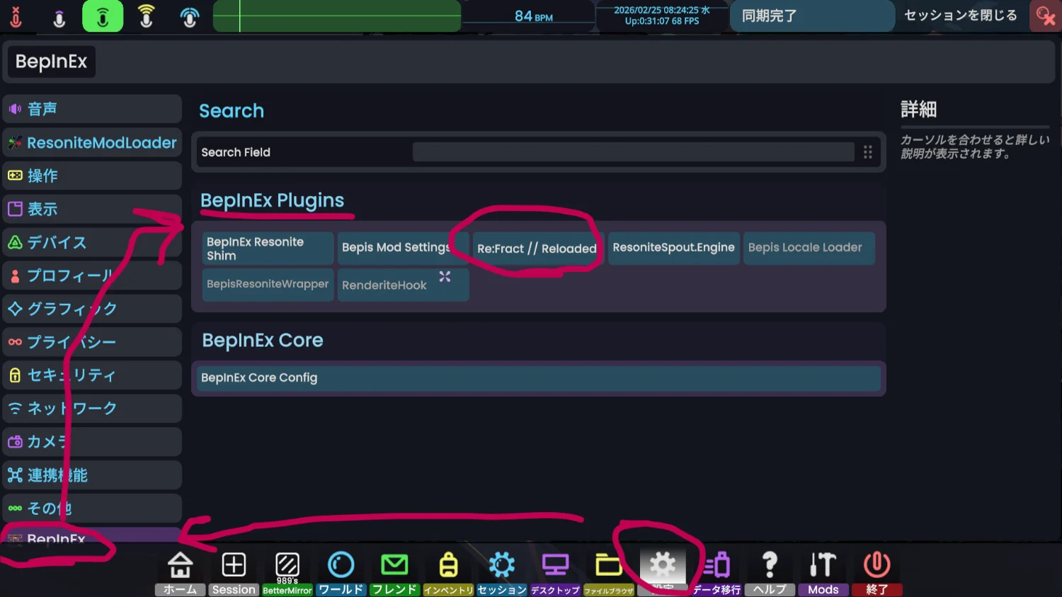 * BepisLoader用のMOD設定(RMLでのModSetting、MonkeyLoaderのSetting相当の機能)は 設定>BepInEX>BepInEX Pluginsから変更する。