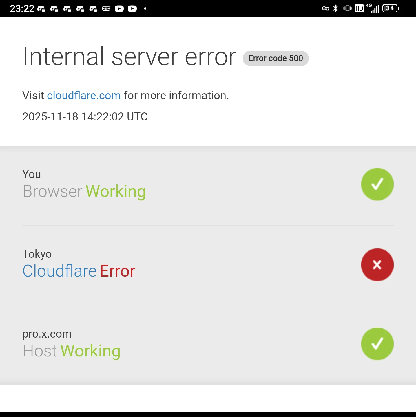 CloudflareがErrorになってる表示は珍しすぎる(Cloudflareが落ちると大抵これすら表示されないので)