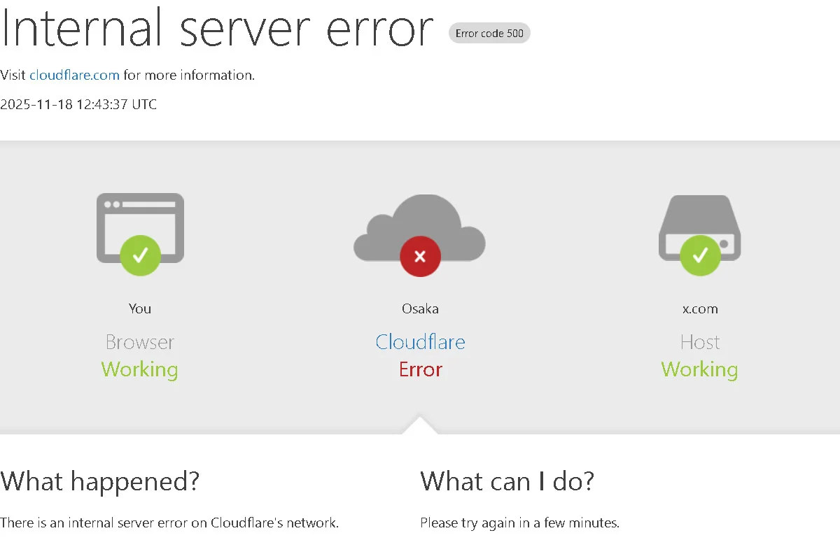 どうやらCloudflareというサービスで、障害発生中のようですが。