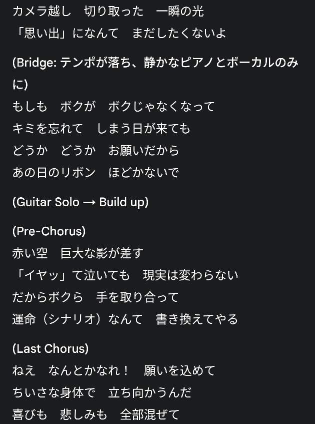 ちいかわが映画化するということで、「YOASOBIがちいかわ映画の主題歌を作ることになったら…」という内容でGeminiに頼んでみたんだけど、思ったよりもそれっぽくなってしまった。