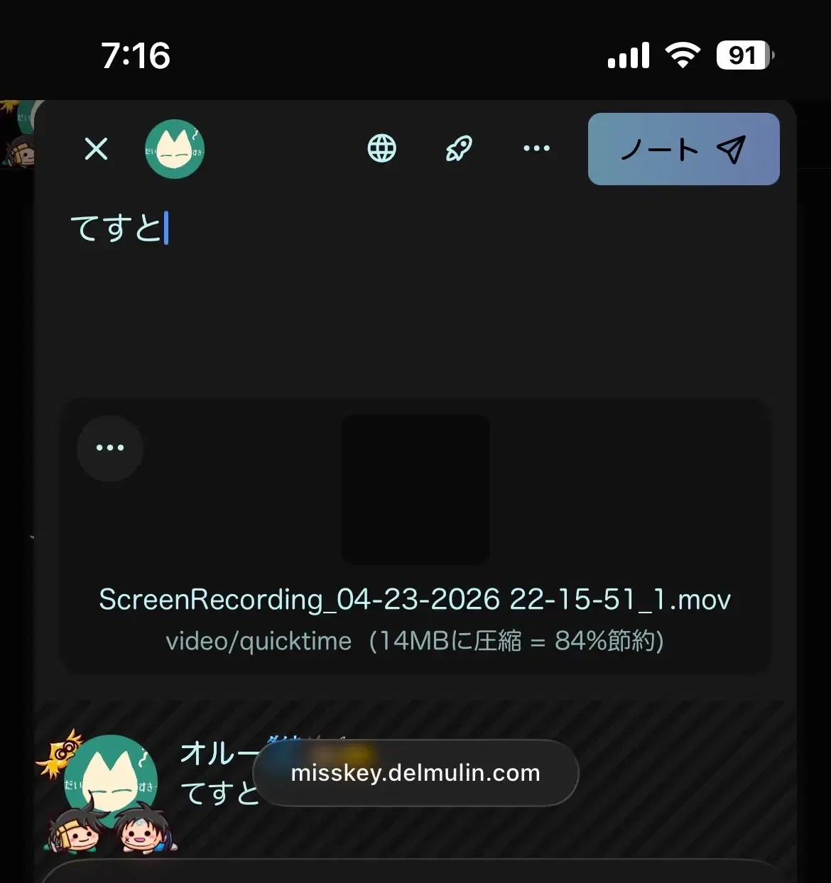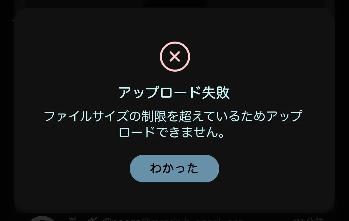 @pooza@mstdn.b-shock.org iPhoneのSafariでは、iPhone上で62.1MBの動画が投稿欄で選択すると89MBとなり、「14MBに圧縮 = 84%節約」となり、投稿するとしばーーらく待ったのちにアップロード失敗します( ´・ω・`)
