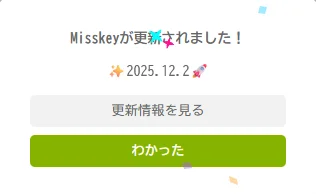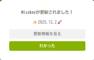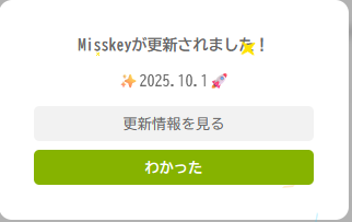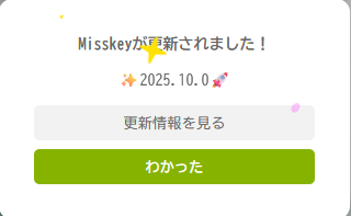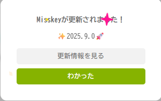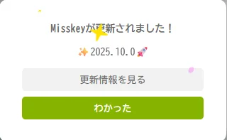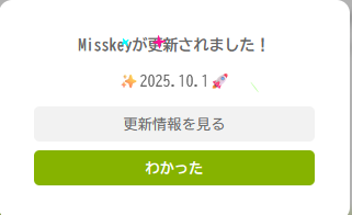 Misskey 2025.9.0が出てるそうです。例によって、何日か待って適用です。