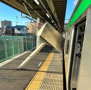 駅ホームのモニターが支柱ごと傾く、けが人なし JR宇都宮線白岡駅