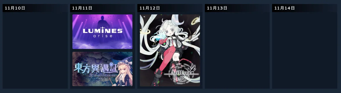 こんなのあるんだと思ってSteamカレンダー見てたら思い出した、ルミネス新作も出るんだった