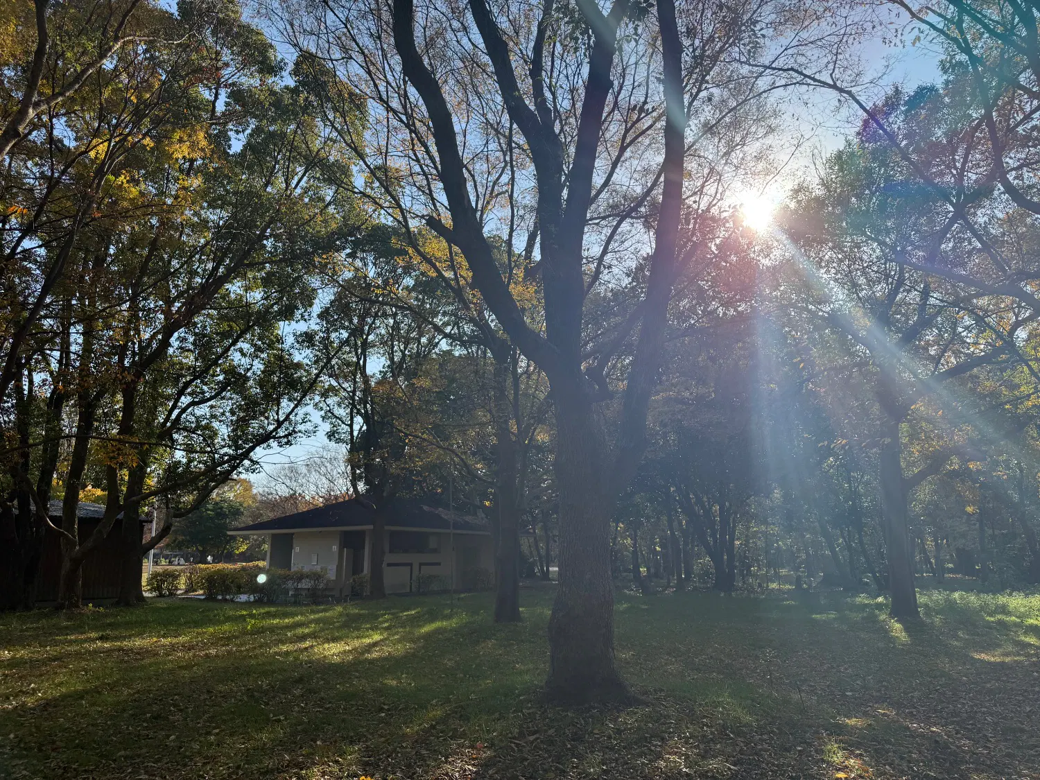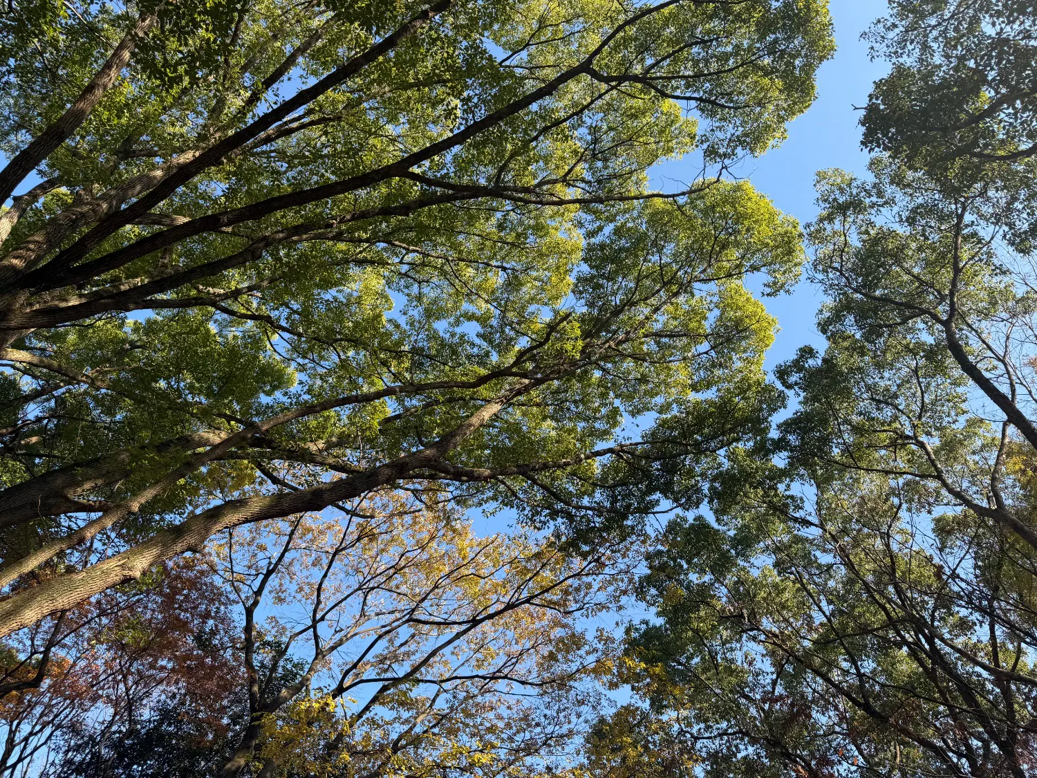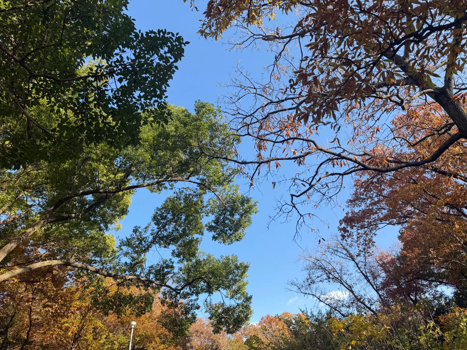 Withered leaved has fallen from many trees, but some of the others were still green, which was unique.