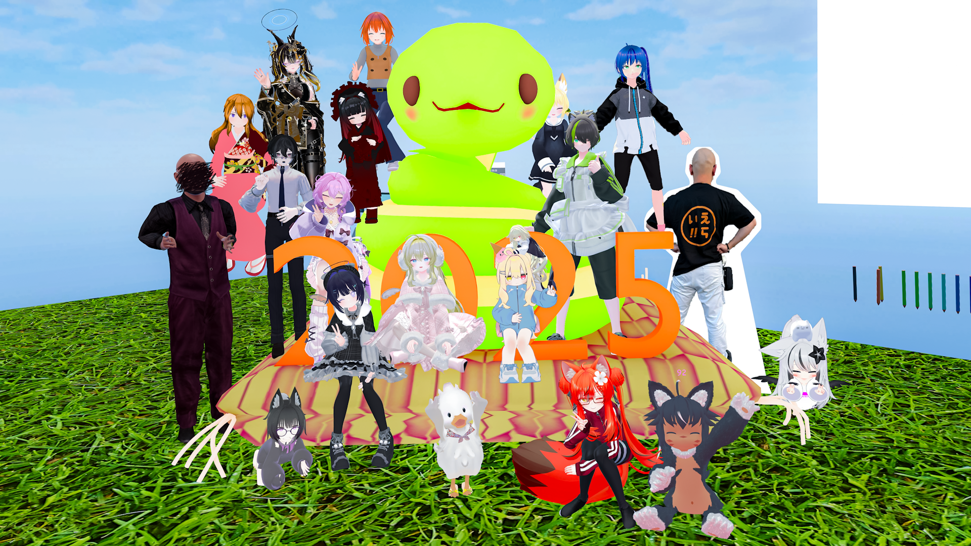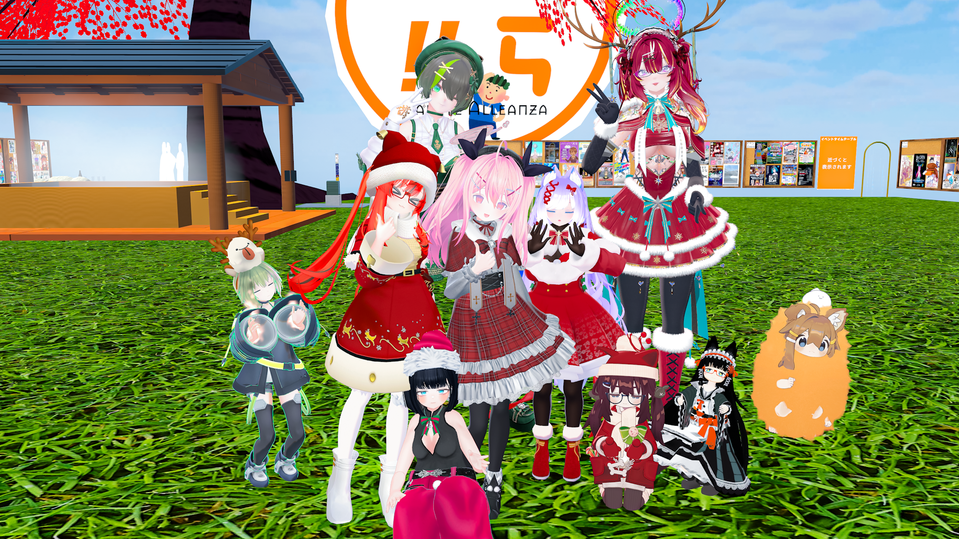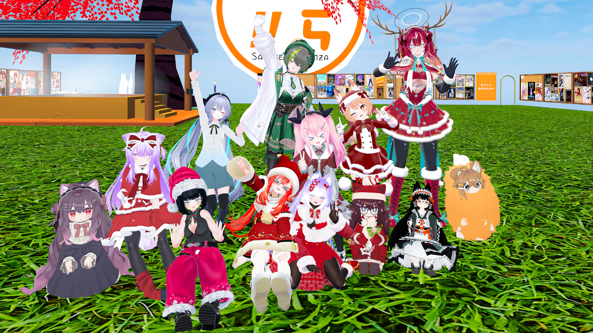 今日の #VRCラジオ体操 集合写真!突然停電してビックリしたけどすぐに復旧したからよかった!第2ではingサンタさんがクリスマスプレゼントしてたらしい!1月のVRC+向け配布アイテムは豪華らしいので楽しみだね! #VRChat
