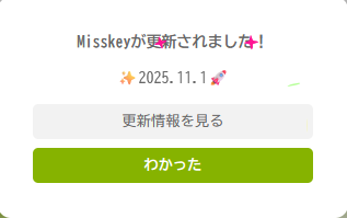 Misskey 2025.9.0が出てるそうです。例によって、何日か待って適用です。