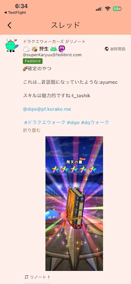 fedibirdからPieFedのコミュに投稿したノートがコミュからRNされたものをcapsicumで見ると、絵文字のショートコードがちぎれます