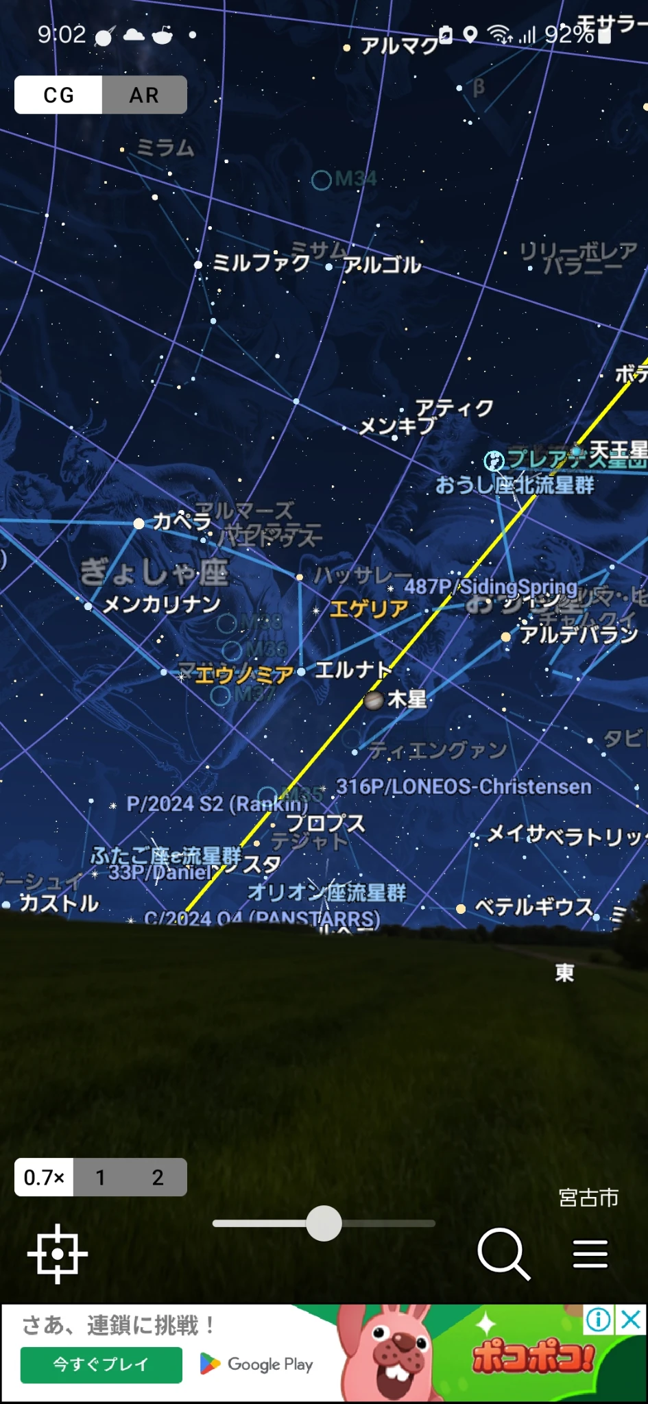輝度的には彗星より明るいが、眩しすぎることはないかんじ。わかりやすくいうと、