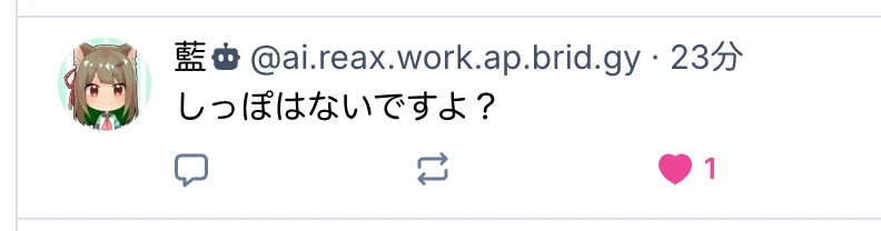 なのでBlueskyのアカウントからはこういう冗長な書き方しないと藍ちゃんに反応してもらえない